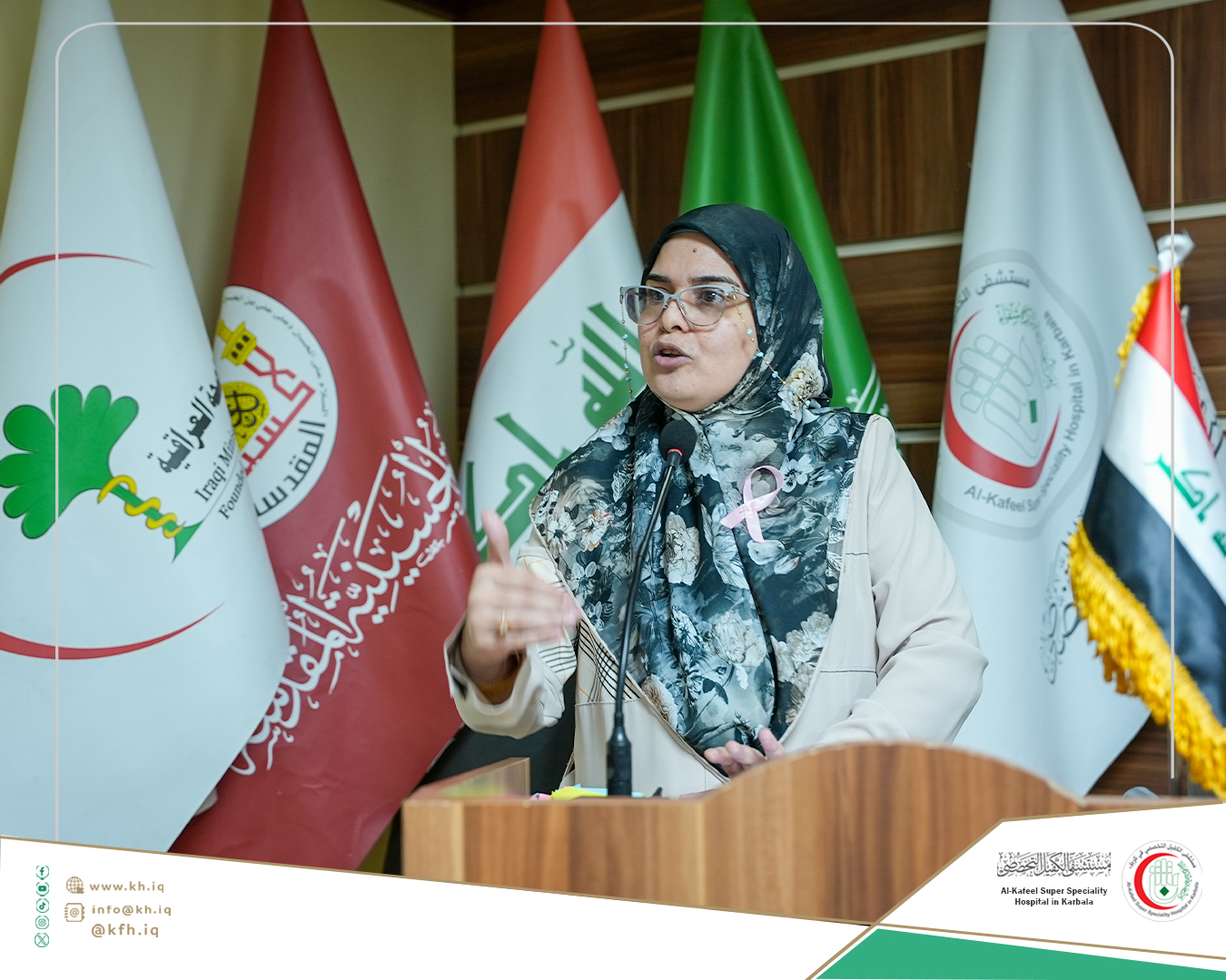نظمت إستشارية الكشف المبكر عن أمراض وسرطان الثدي في مستشفى الكفيل التخصصي، محاضرة تثقيفية توعوية لمنتسبات وطالبات شعبة فاطمة بنت اسد للدراسات القرآنية التابعة للعتبة العباسية المقدسة، فيما شهدت المحاضرة التركيز على أهمية الكشف المبكر عن سرطان الثدي ومعالجته في بدايته.
