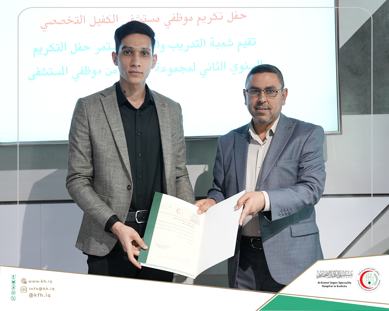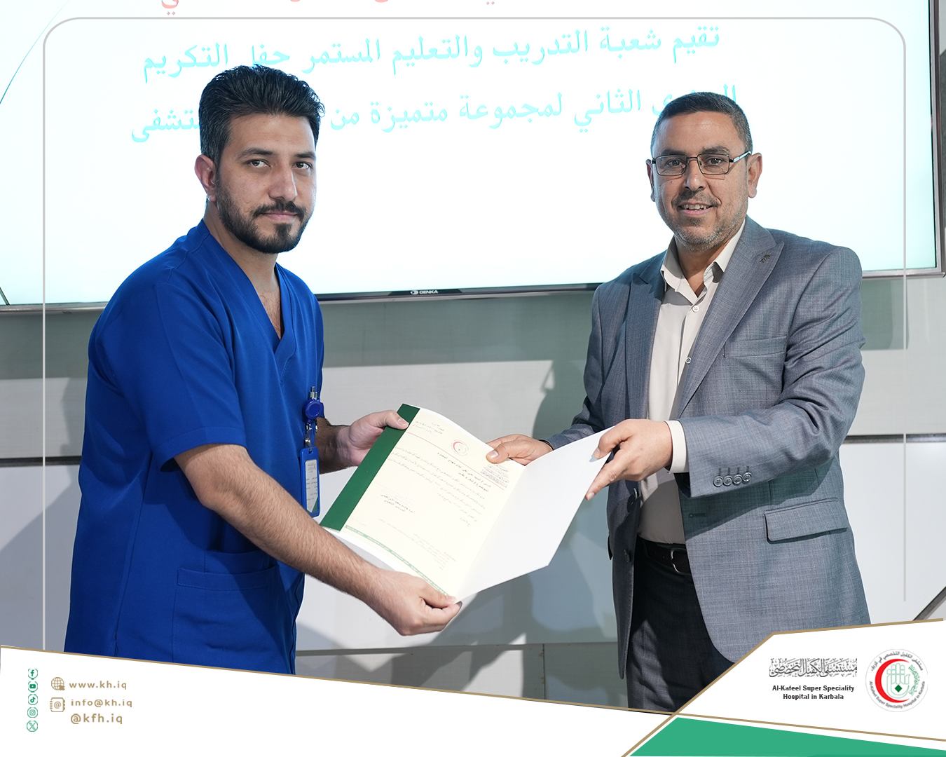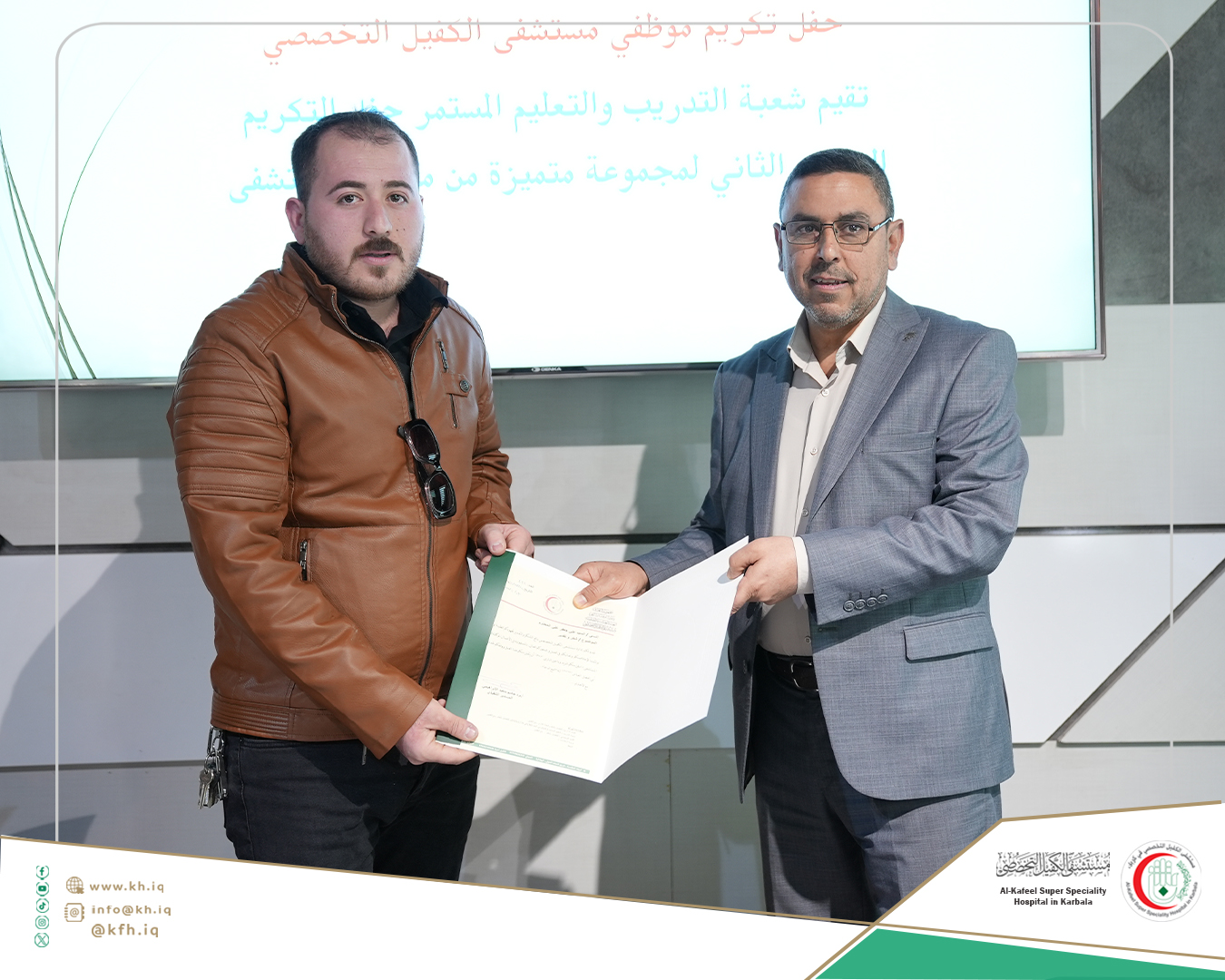 جاء ذلك على هامش الحفل الذي نظمته شعبة التدريب والتعليم المستمر في المستشفى، لتكريم الموظفين الذين حصلوا على تقييمات عالية في التدريبات والورش التي اقيمت خلال عام 2024 المنصرم، وتكريم الموظفين الذين حصلوا على الشهادات الأكاديمية العليا إضافة إلى تكريم المدربين، على قاعة المؤتمرات في المستشفى.