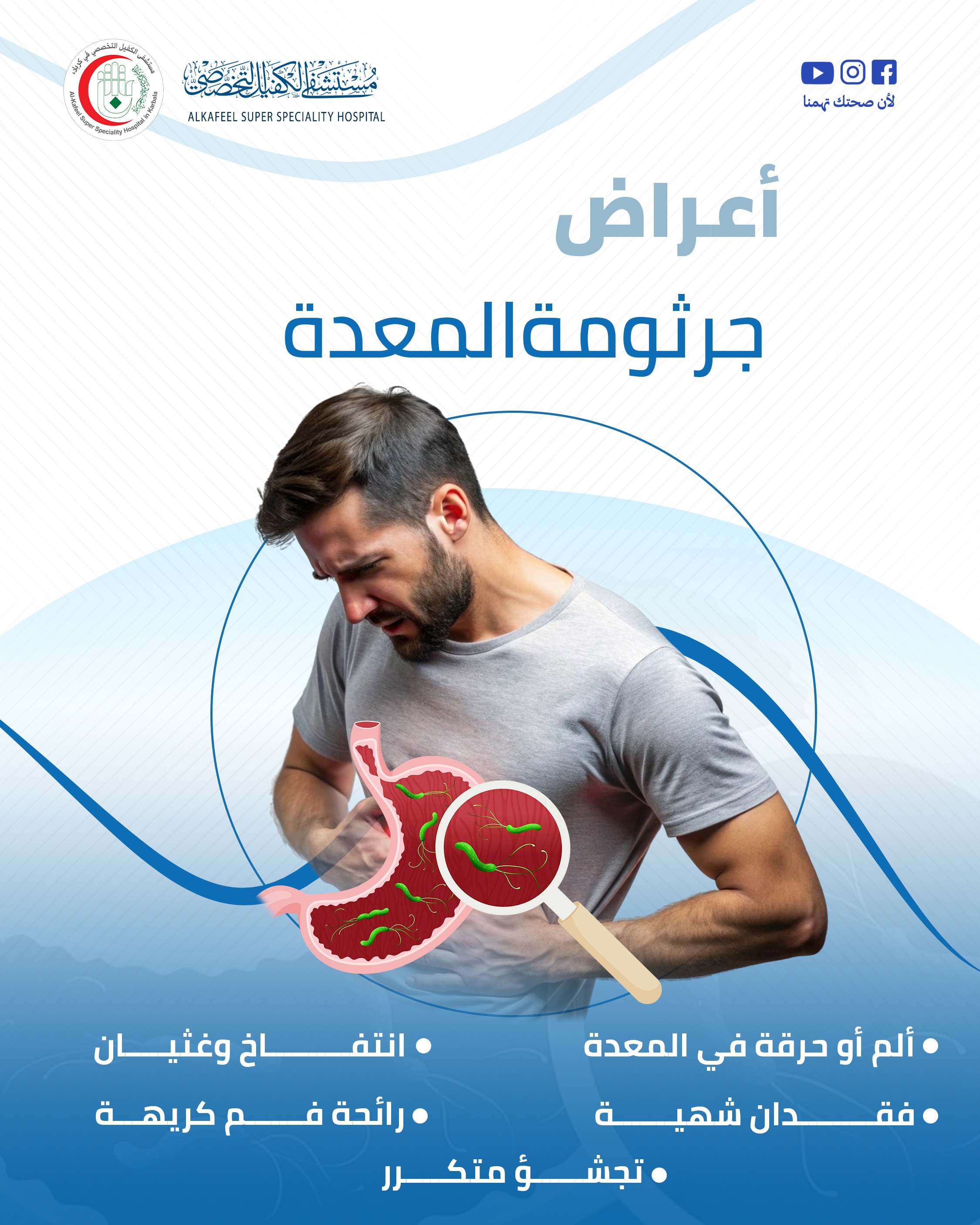 ألم أو حرقة في المعدة انتفاخ وغثيانفقدان شهيةرائحة فم كريهةتجشؤ متكرر