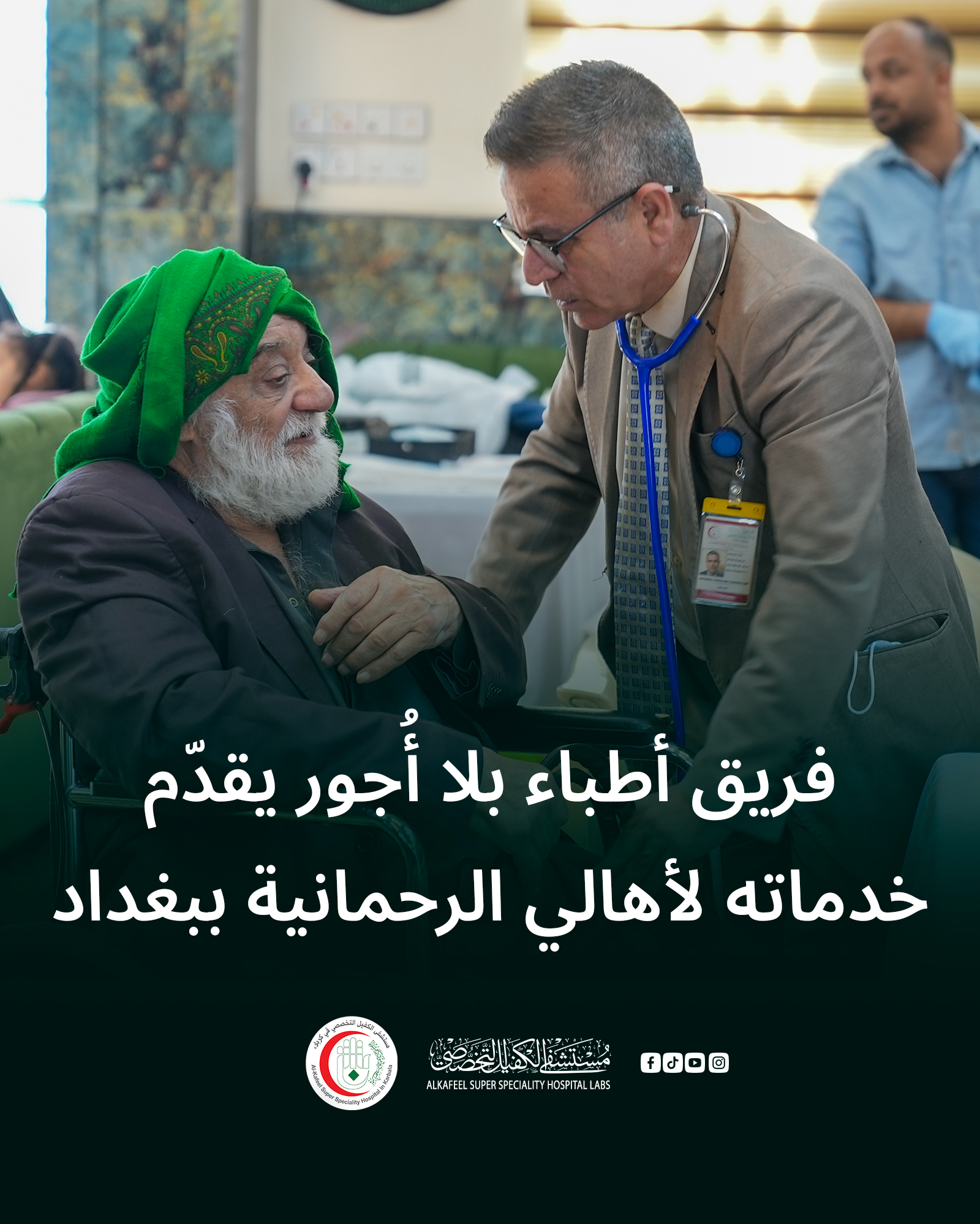 خيّم فريق أطباء بلا اُجور التابع لمستشفى الكفيل التخصصي، في منطقة الرحمانية بمحافظة بغداد لتقديم خدماته لأهالي المنطقة، وبينما شملت تلك الخدمات تخصصات الباطنية والأطفال والعيون والجلدية والاذن والانف الحنجرة والقدم السكري، يُحال عدد من المرضى إلى المستشفى لمعالجتهم بشكل دقيق.