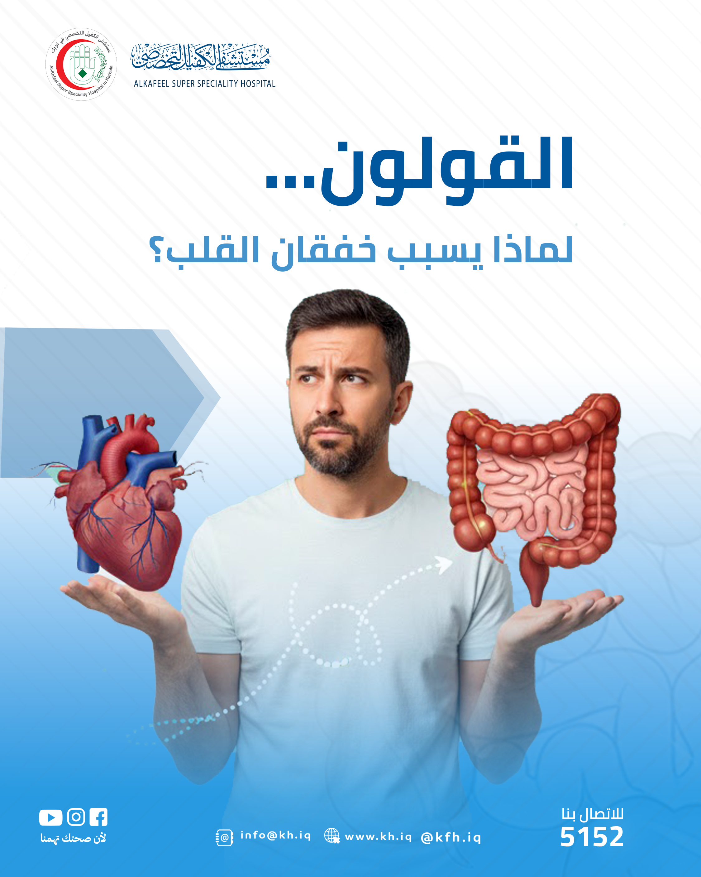 يمكن أن تسبب أعراض القولون العصبي تسارع في ضربات القلب بسبب الضغط الذي يتراكم على البطن أثناء الهضم، حيث يمكن أن تسبب الغازات الناتجة عن القولون العصبي وأحماض المعدة الزائدة ضغطًا زائدًا على الصدر، مما قد يؤدي لتسارع في ضربات القلب لتعويض هذه المشكلة وللحفاظ على وظيفة القلب طوال فترة الضغط الناتجة عن القولون العصبي.
