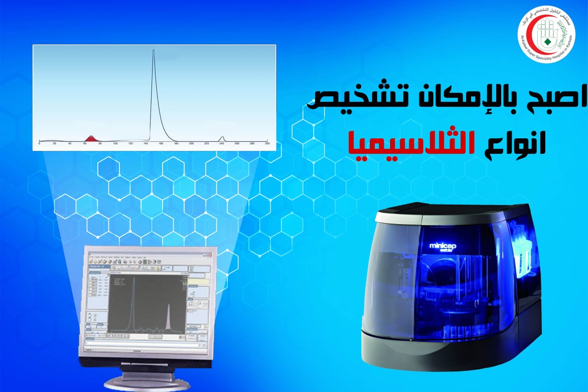 وقالت الدكتورة مسؤولة الشعبة بالمستشفى الدكتورة زينب الابراهيمي، في حديث صحفي ، أن شعبة المختبرات تمتلك تقنية السيبا (sepia capillary electrophoresis) التي تعمل على الترحيل الكهربائي للهيموغلوبين والتي تقوم بتشخيص انواع الثلاسيميا وتحليل البروتين والترحيل الكهربائي لبروتينات الدم وتشخيص امراض الكبد وبعض انواع السرطانات.