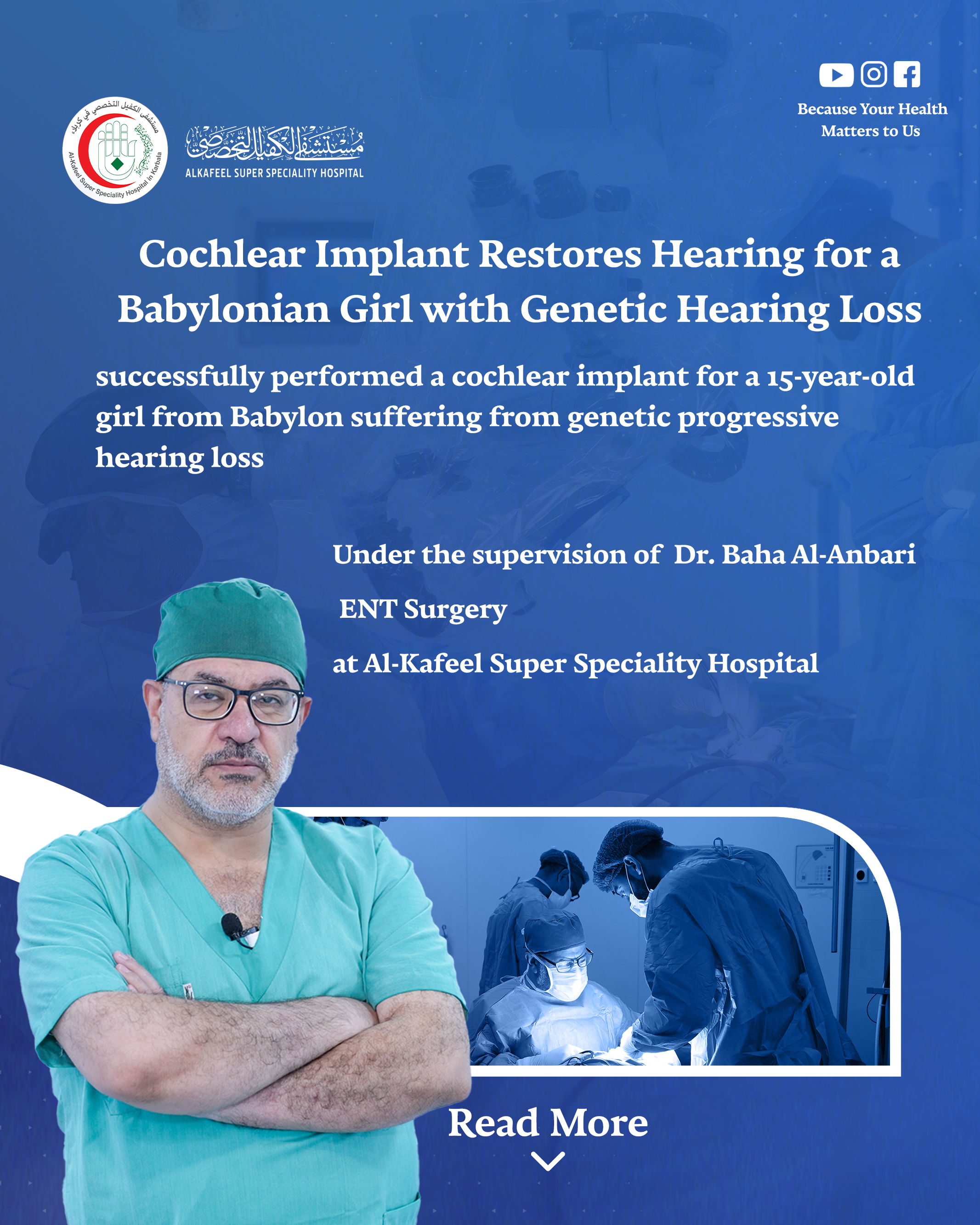 Dr. Baha Al-Anbari stated that the decision to proceed with the surgery came after a comprehensive evaluation and advanced diagnostic tests, which confirmed that cochlear implantation was the optimal solution to restore the patient’s hearing and improve her quality of life.