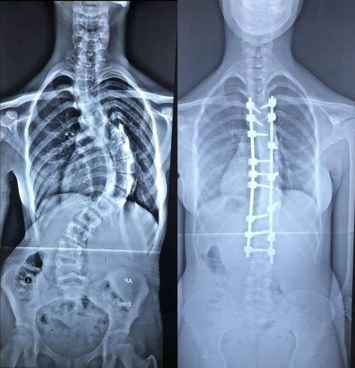 وبين قاسم، بعد دراسة حالتها الصحية ادخلت الى صالة العملية واجرينا لها عملية استغرقت قرابة الـ(6) ساعات تم خلالها تعديل الانحراف باستخدام تثبيت الفقرات وقطع جزء من العمود الفقري لأجراء التعديل.