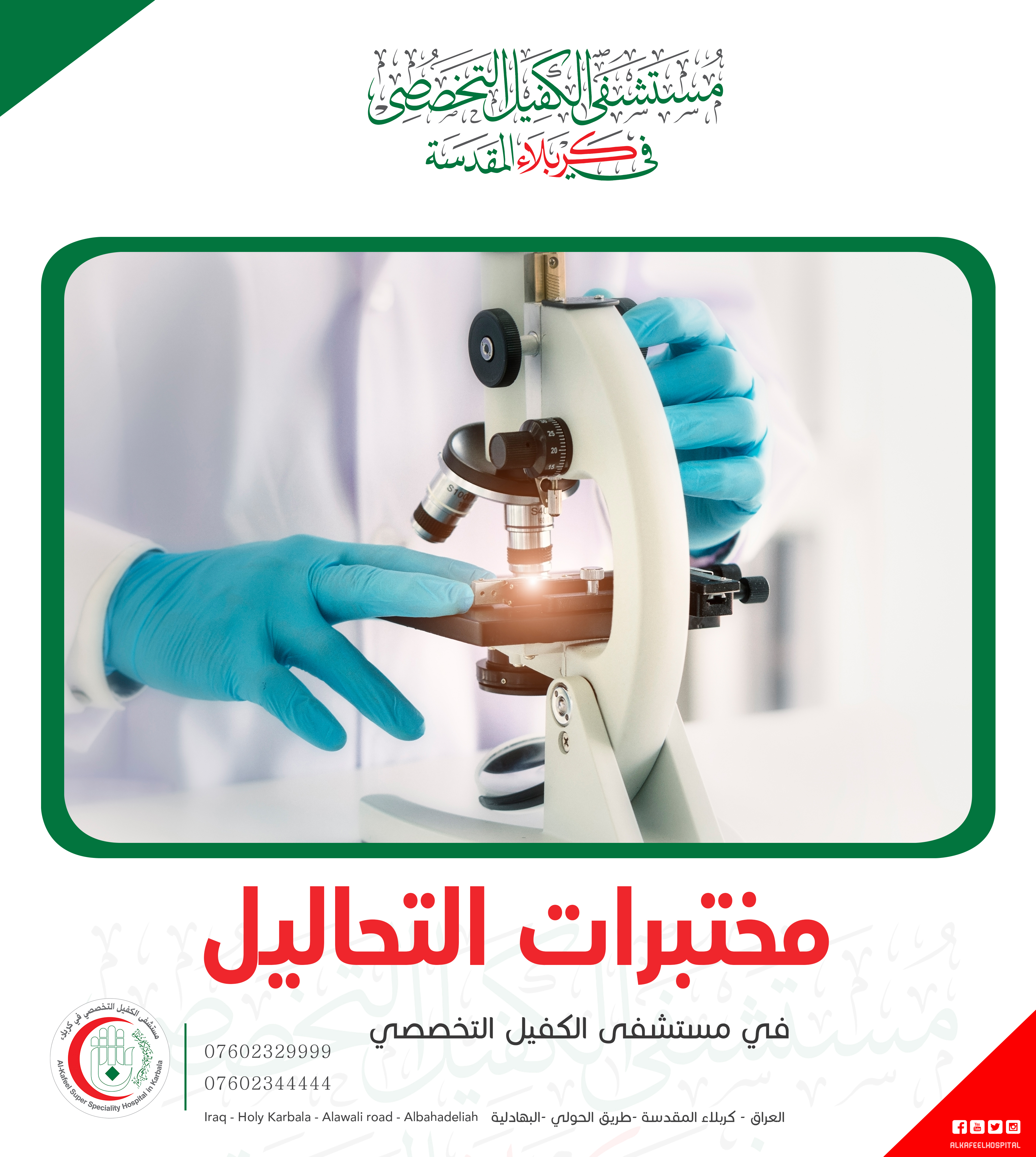 اعلنت وحدة الفحص النسيجي في مختبرات مستشفى الكفيل التخصصي بكربلاء، إمتلاكها تقنيات تعطي نتائج سريعة ودقيقة للفحص النسيجي الخاص بالأورام.