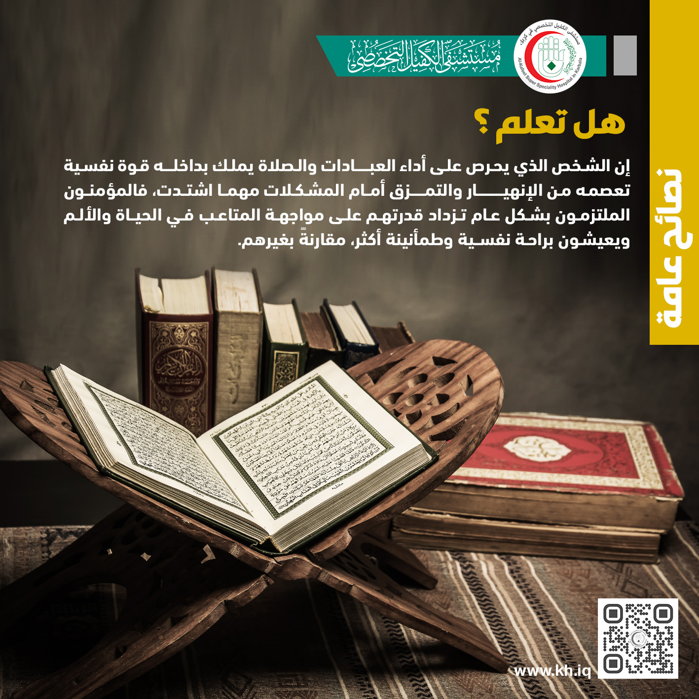 إن الشخص الذي يحرص على أداء العبادات والصلاة يملك بداخله قوة نفسية تعصمه من الإنهيار والتمزق أمام المشكلات مهما اشتدت، فالمؤمنون الملتزمون بشكل عام تزداد قدرتهم على مواجهة المتاعب في الحياة والألم ويعيشون براحة نفسية وطمأنينة أكثر، مقارنةً بغيرهم.
