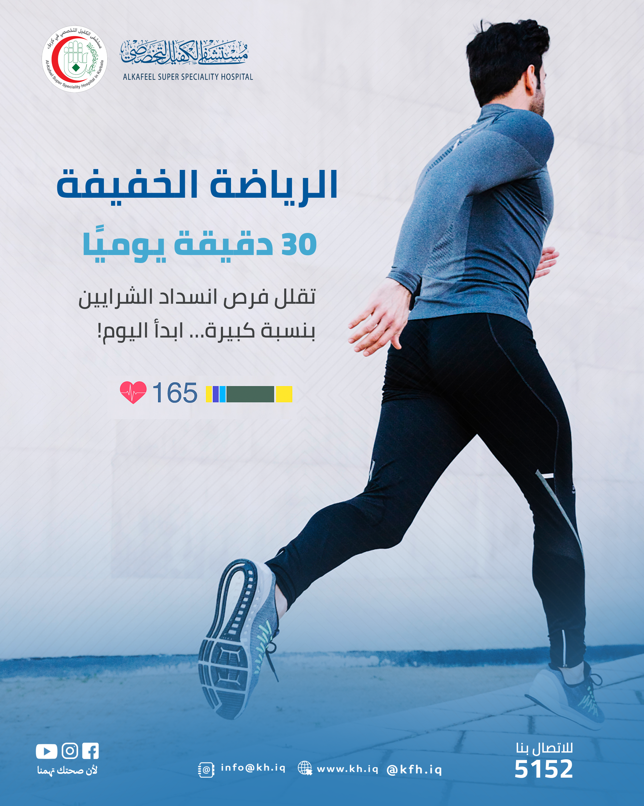 احرص على ممارسة الرياضة الخفيفة لمدة30 دقيقة يوميا للمحافظة على صحة جسمك