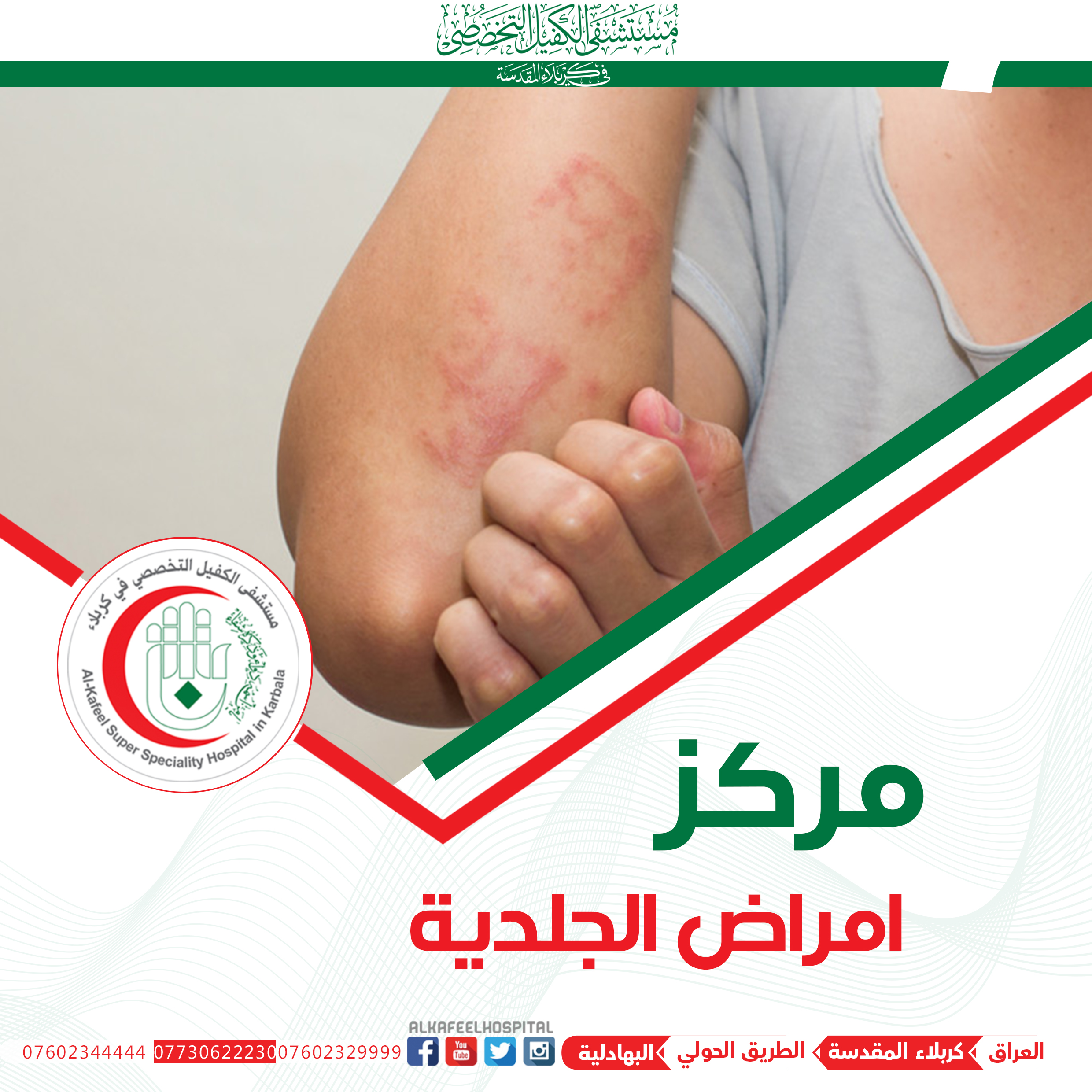 اعلن مركز الامراض الجلدية في مستشفى الكفيل بكربلاء عن توفر احدث الاجهزة والتقنيات لمعالجة مختلف الامراض الجلدية ومنها جهاز الاكزيمر.