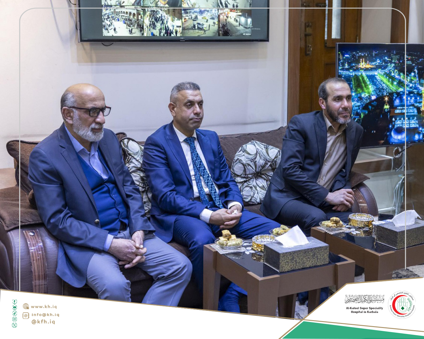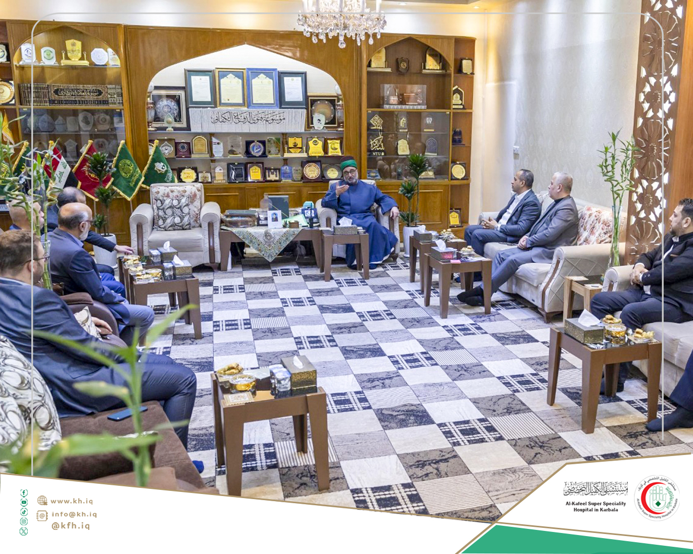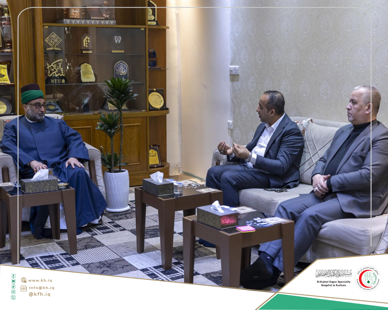 The Head of the Authority, Mr. Ali Ahmed Ubaid, stated, “Our visit to the Al-Abbas Holy Shrine aims to expand the health insurance project plan by discussing the possibility of including Alkafeel Hospital as one of the providers of this service.”