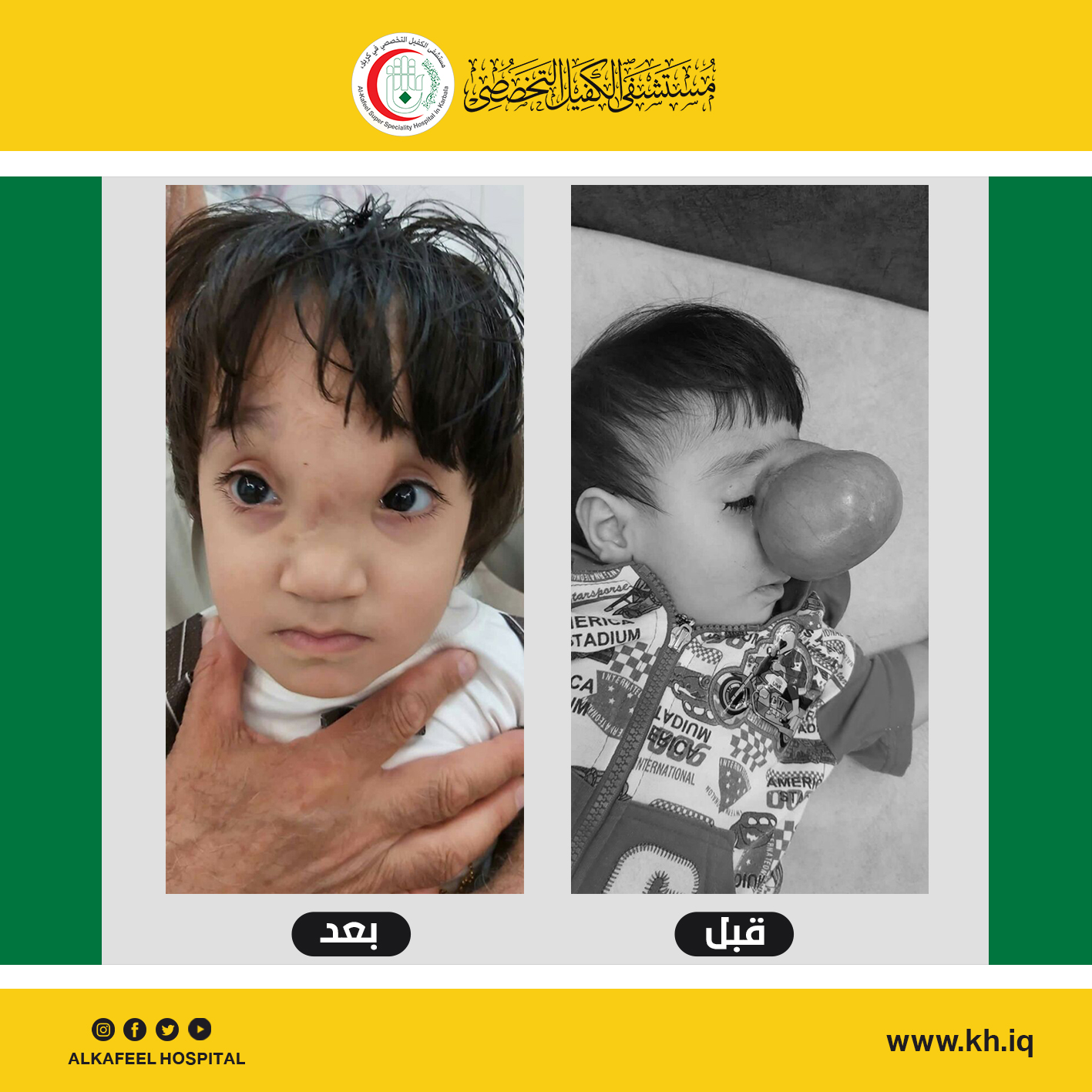 وبين الفريق الطبي، إن الطفل كان يعاني من وجود تشوه في عظام الجمجمة والجبهة وجسر الانف، مؤكداً نجاح العملية واعادة الطفل الى ذويه وهو يتمتع بصحة جيدة.