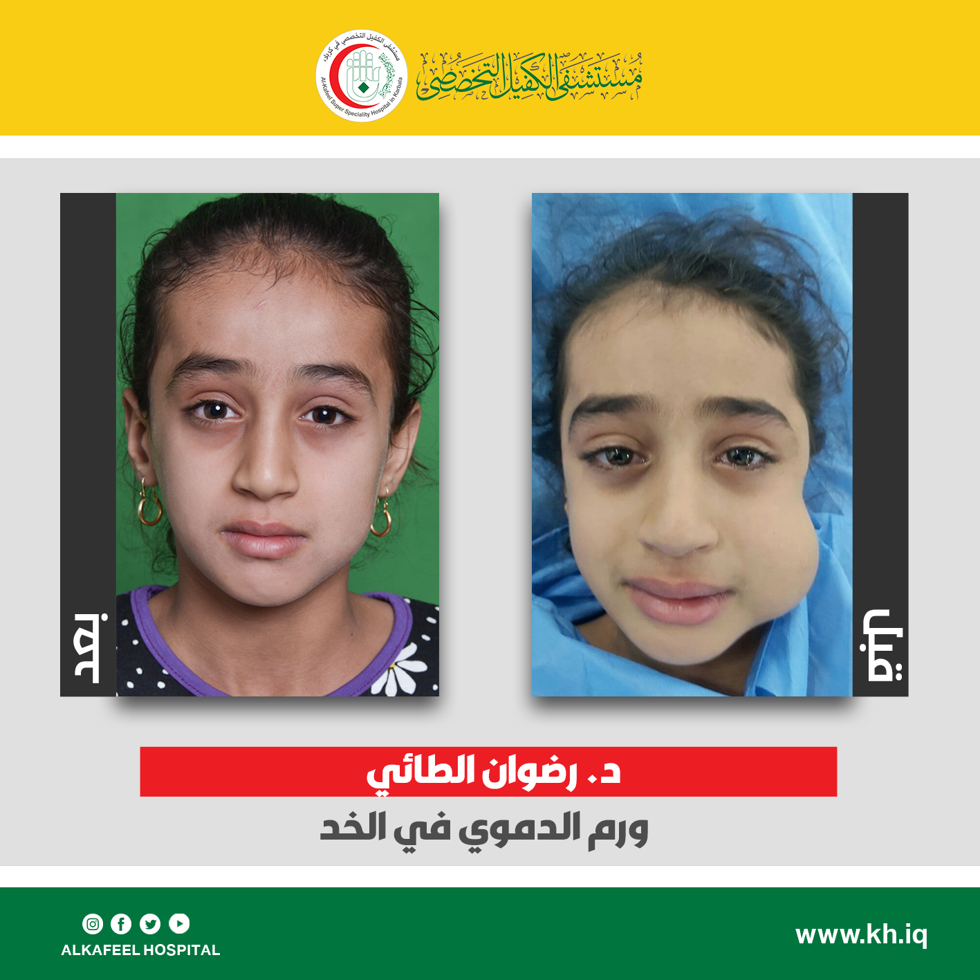 الطفلة تعاني من وجود الورم منذ الولادة وقد راجعت العديد من المستشفيات داخل العراق وسافرت الى دولة الهند ولم تُجرى معالجتها لصعوبة الحالة