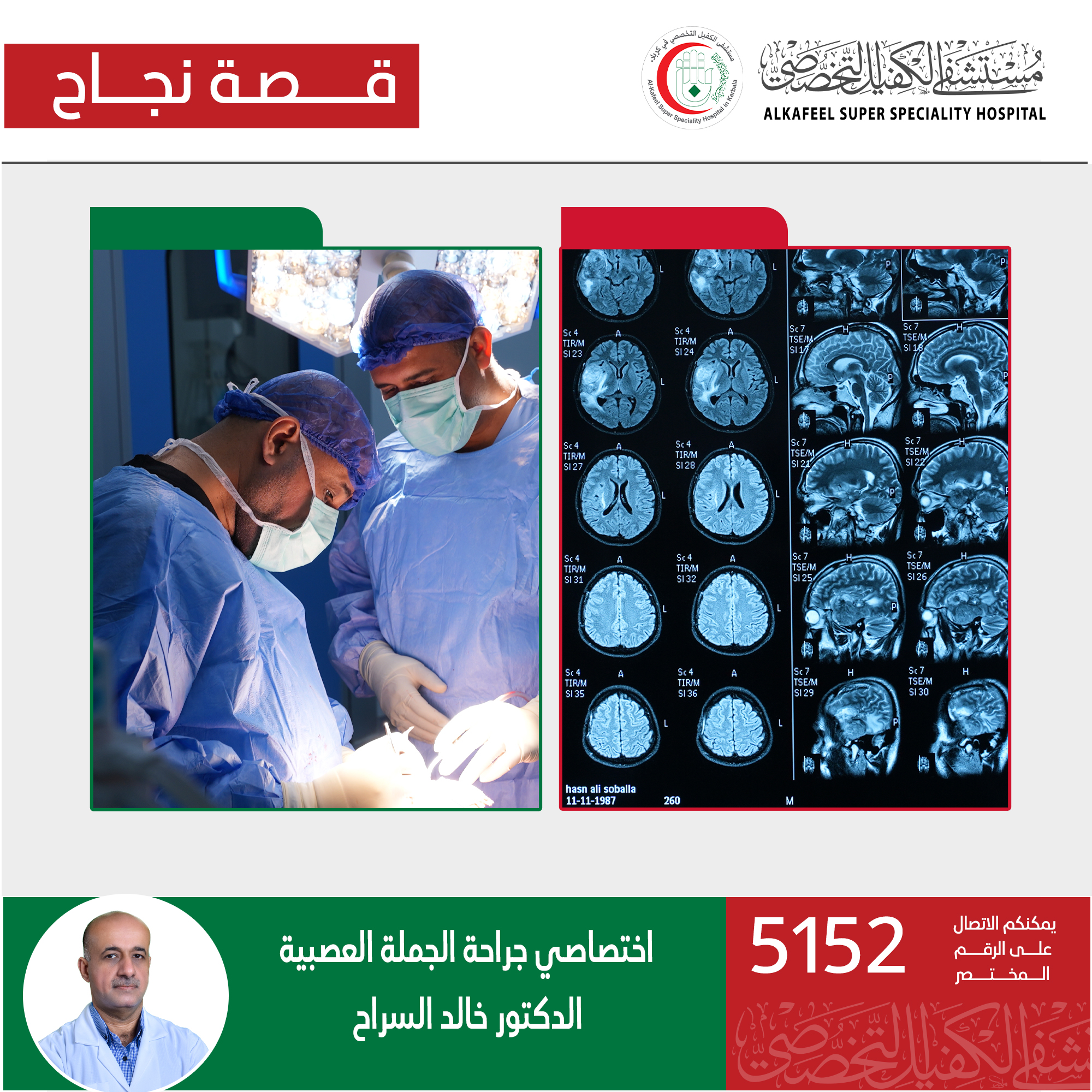 وأضاف السراج، إن العملية نجحت بشكل كامل ولم تحصل لدينا أي مضاعفات، والمريض بوضع صحي مستقر، والدور المهم بالعملية كان للإمكانات المتوفرة في صالة العمليات، مشيرا إلى أن ذلك الشاب مجراة له عملية سابقة قبل نحو عام واحد لرفع ورم من الدماغ وخضع للعلاج الكيميائي والإشعاعي، لكن الورم عاد وتكّون مرة أخرى.