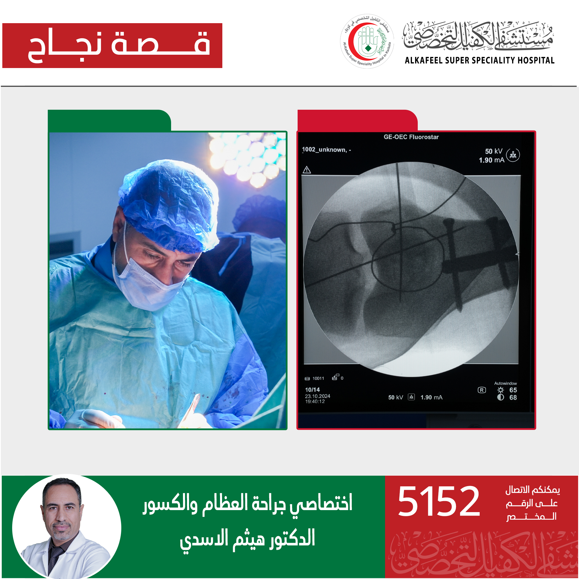 حقق فريق طبي متخصص بجراحة العظام والكسور والمفاصل في مستشفى الكفيل التخصصي بكربلاء، نجاح عالي بعمليتين اجراها في وقت واحد لشاب تعرض الى حادث سير في أحدى المحافظات المجاورة وتمت إحالته الى المستشفى لتلقي العلاج المناسب.