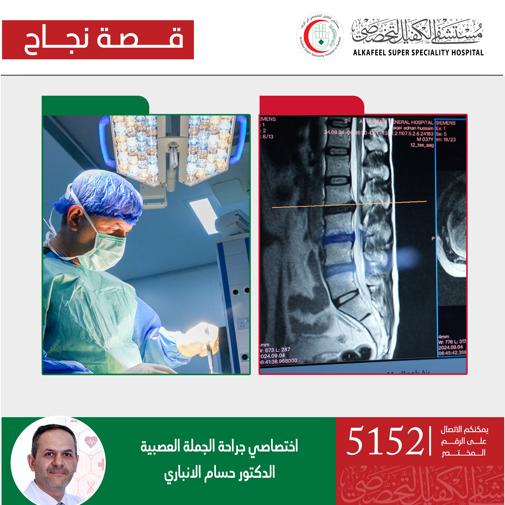 أعلن فريق طبي متخصص بجراحة الجملة العصبية في مستشفى الكفيل التخصصي بكربلاء، عن نجاحه بعملية معالجة شاب يعاني من ضعف الأطراف نتيجة اصابته بانزلاقات متعددة بالفقرات.