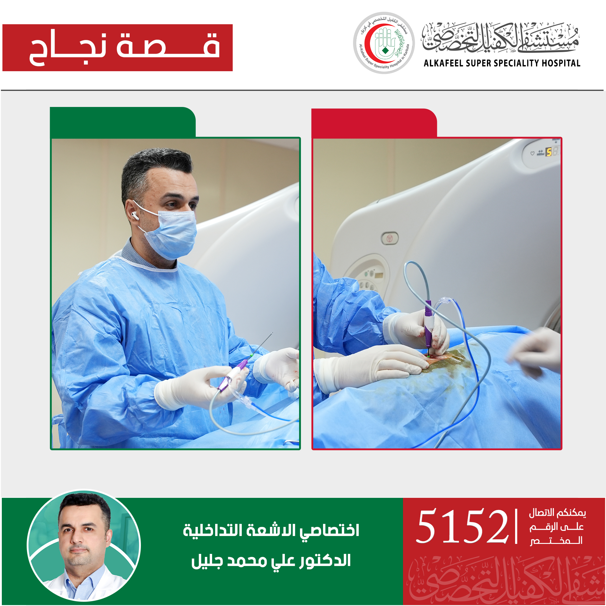 وأوضح جليل، بعد اخذ صورة المفراس تبين لنا وجود ورم عظمي يقع أعلى عظم الفخذ الايسر، لافتا الى ان هكذا حالات تتم معالجتها في السابق عن طريق التداخل الجراحي ولكن بالوقت الحالي وبفضل توفر التقنيات الحديثة في مستشفى الكفيل التخصصي ممكن علاج الحالة بدلالة المفراس الحلزوني عن طريق الكي الحراري بفتحة لا تتجاوز 2ملم، وبنسبة نجاح تتجاوز 90%.