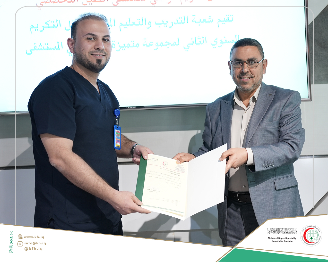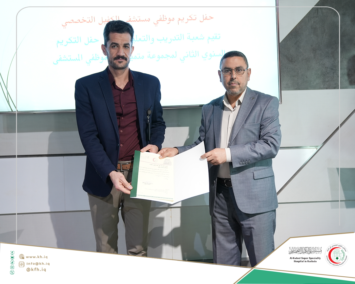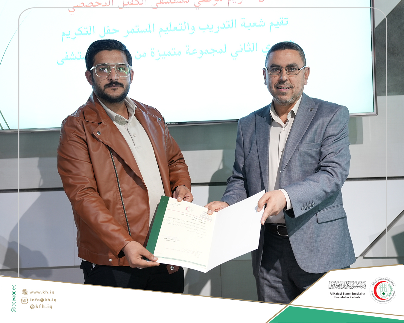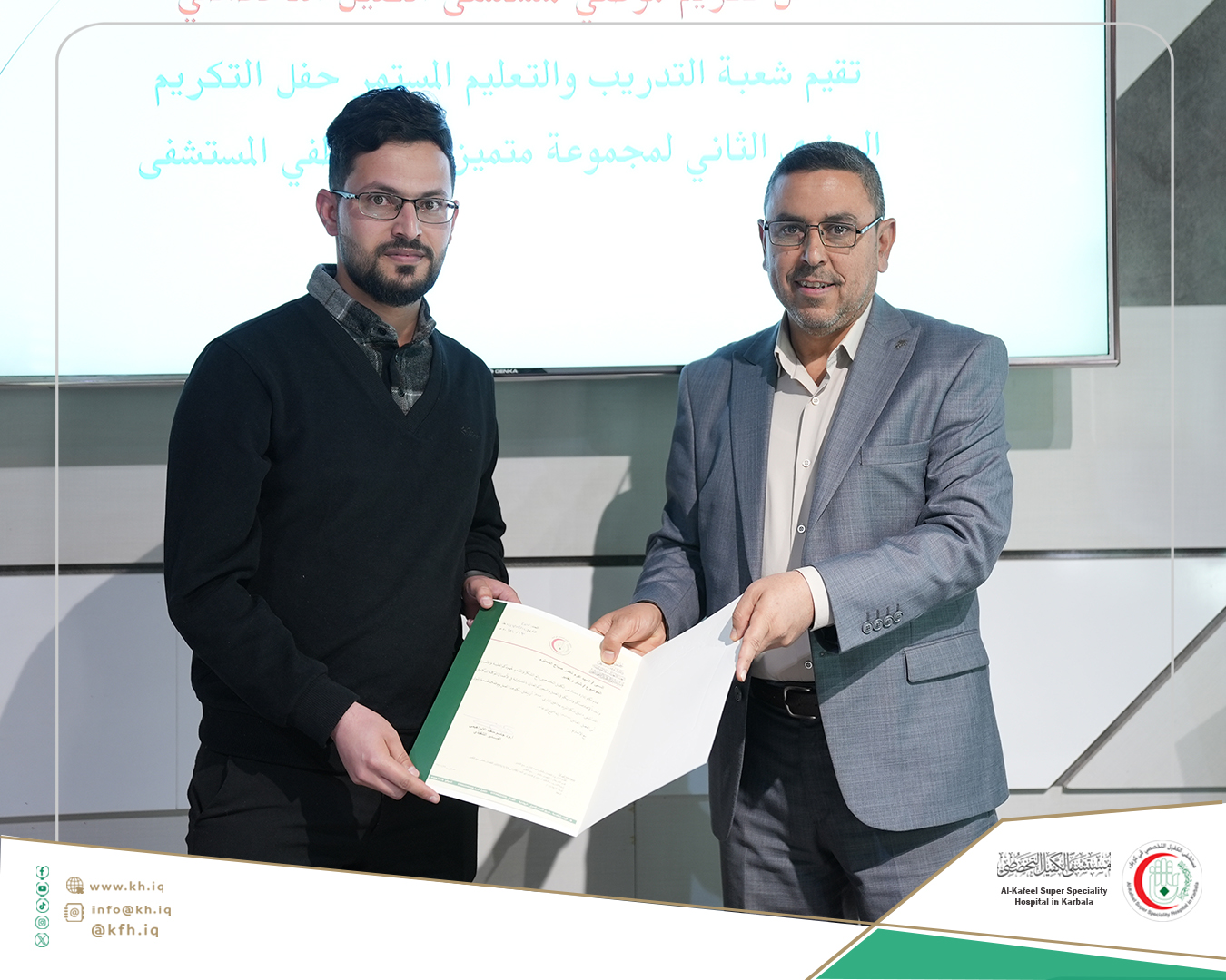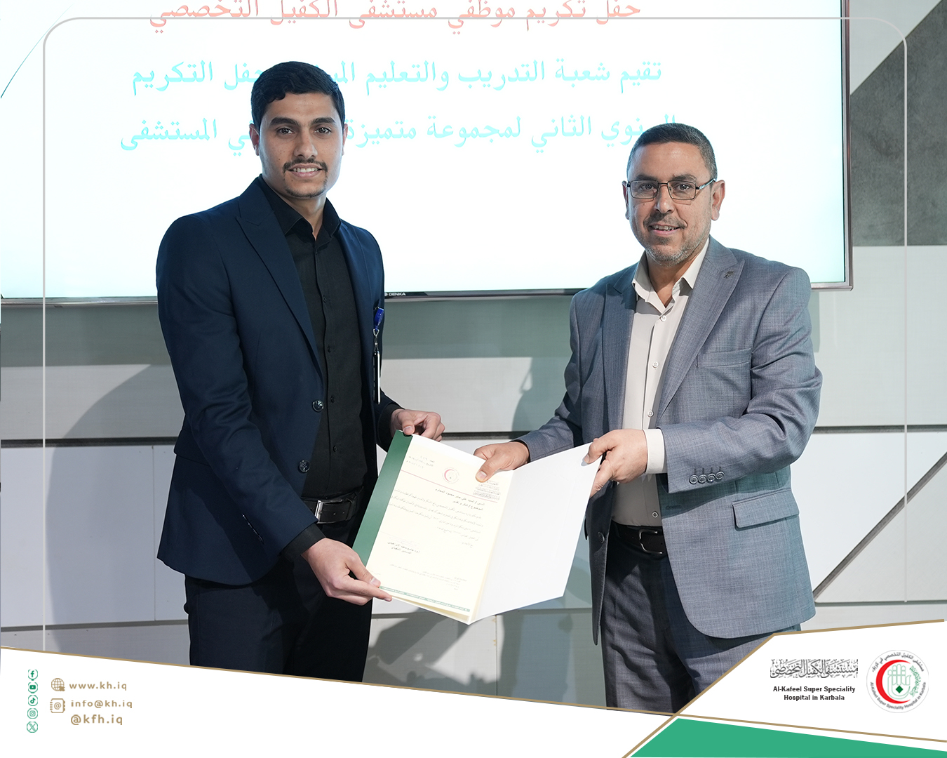 جاء ذلك على هامش الحفل الذي نظمته شعبة التدريب والتعليم المستمر في المستشفى، لتكريم الموظفين الذين حصلوا على تقييمات عالية في التدريبات والورش التي اقيمت خلال عام 2024 المنصرم، وتكريم الموظفين الذين حصلوا على الشهادات الأكاديمية العليا إضافة إلى تكريم المدربين، على قاعة المؤتمرات في المستشفى.