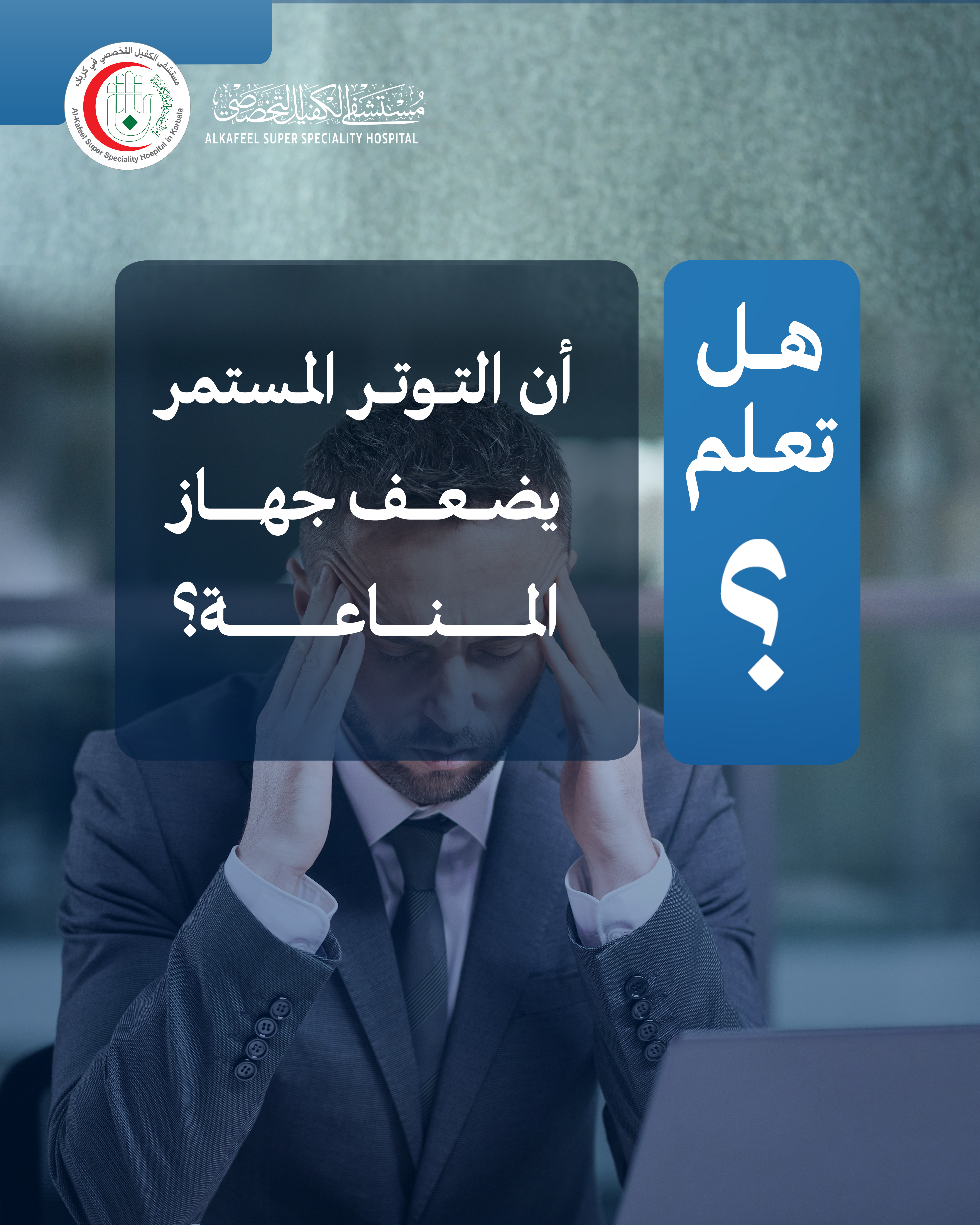 عزيزي المتابع هل تعلم ان التوتر المستمر يضعف المناعة وهذا يعني احتمالية إصابتك بالكثير من الامراض