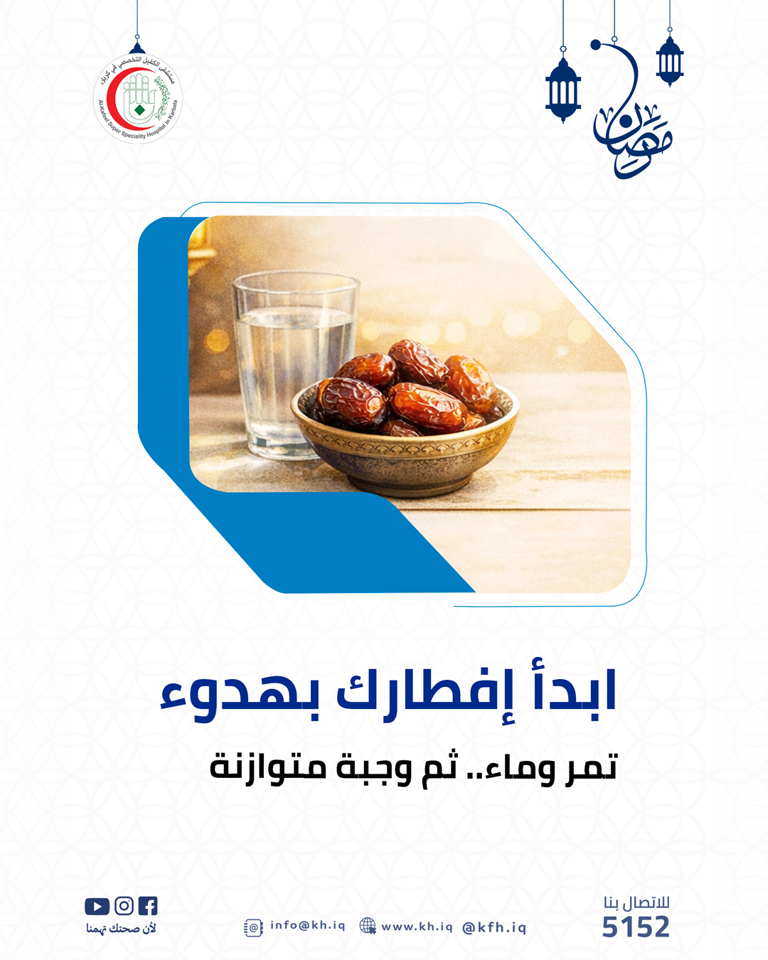 يحتوي التمر الطازج على نسب فعالة من المعادن، والألياف، والسكر، والفيتامينات، لذلك يعتبر التمر والماء الخيار الأمثل لقطع مدة الصيام والتمهيد لبدء وجبة إفطار صحية.