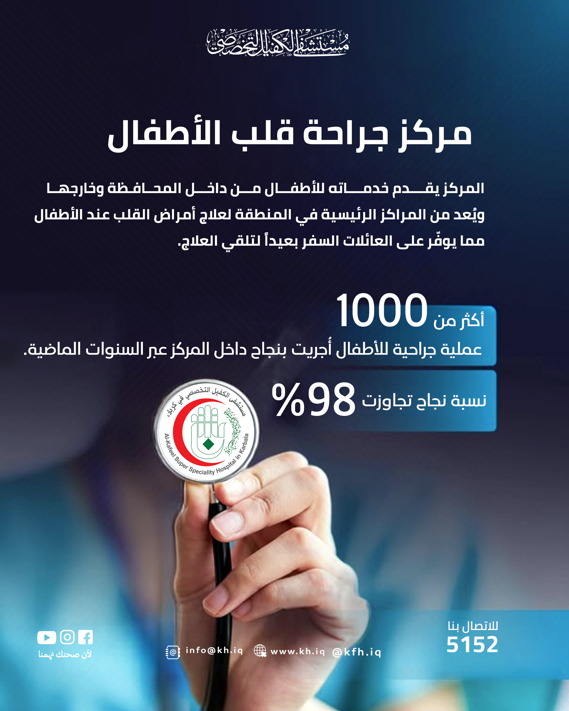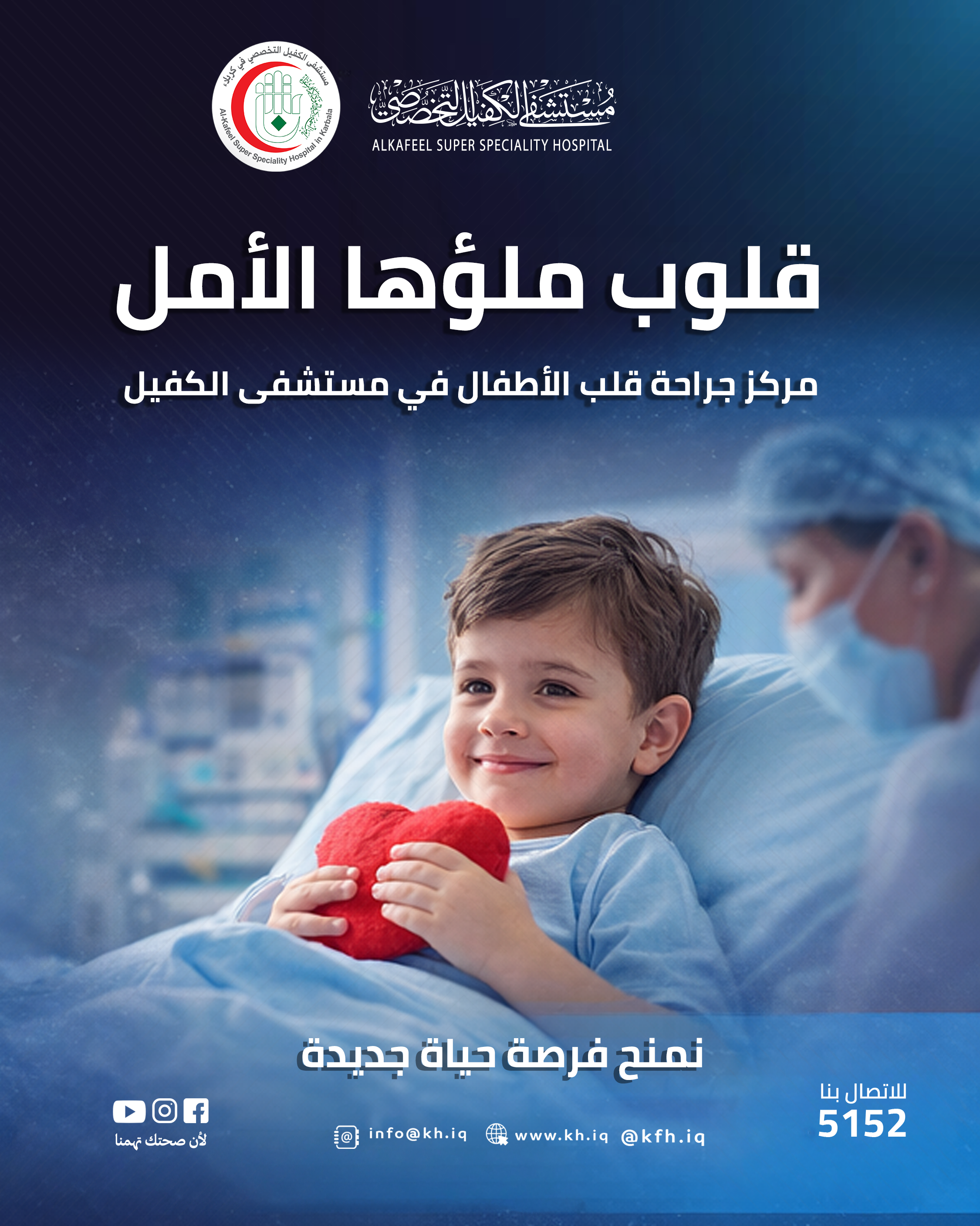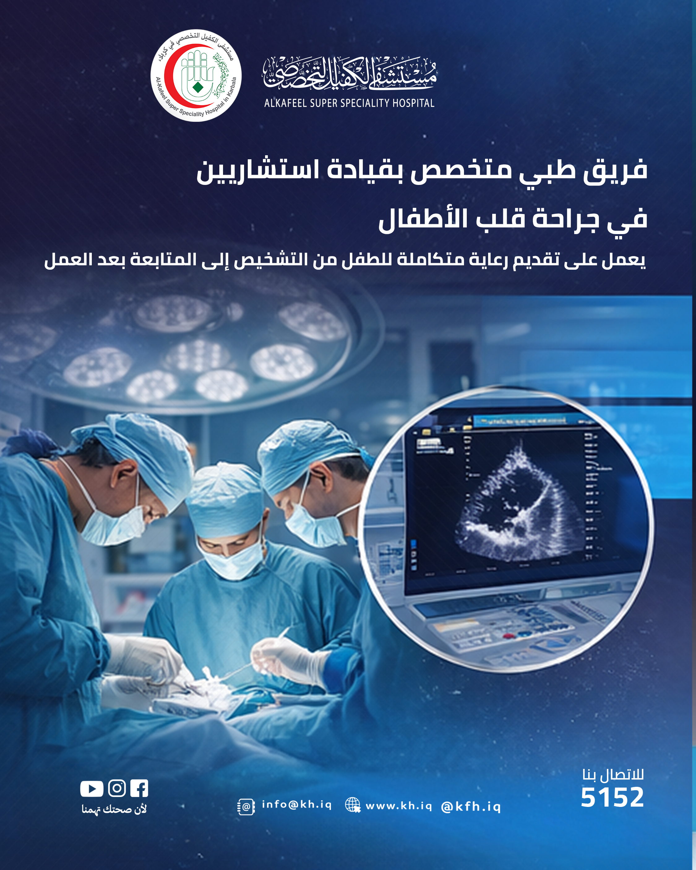 مركز جراحة قلب الأطفال التابع لمستشفى الكفيل التخصصي باشراف نخبة من الاستشاريين لتقديم رعاية متكاملة بدأ من التشخيص وانتهاء الى ما بعد العملية.